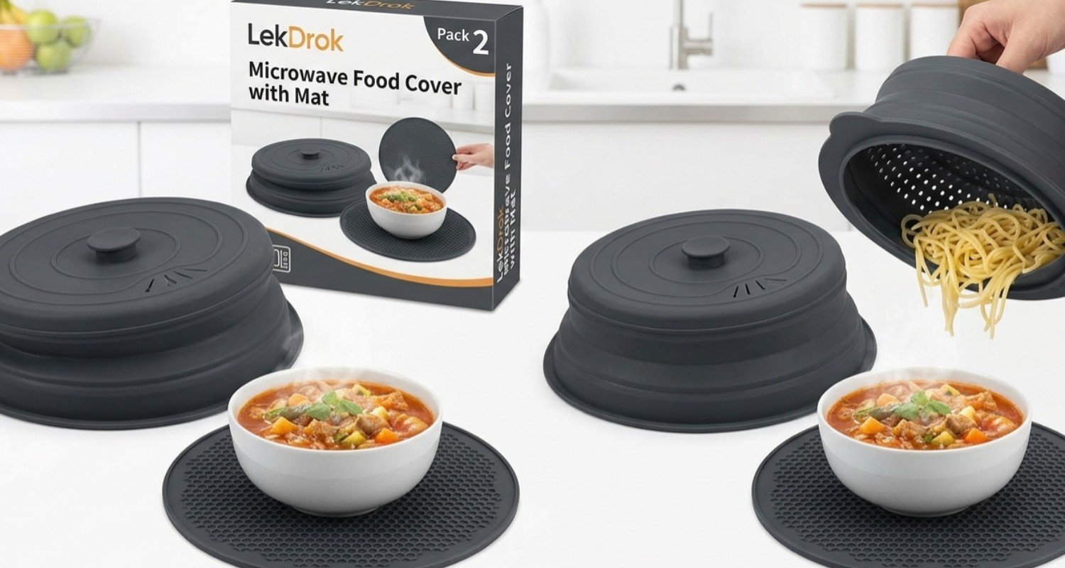 Keep your microwave clean and meals mess-free with the LekDrok 10 Inch Silicone Microwave Food Cover & Collapsible Mat.