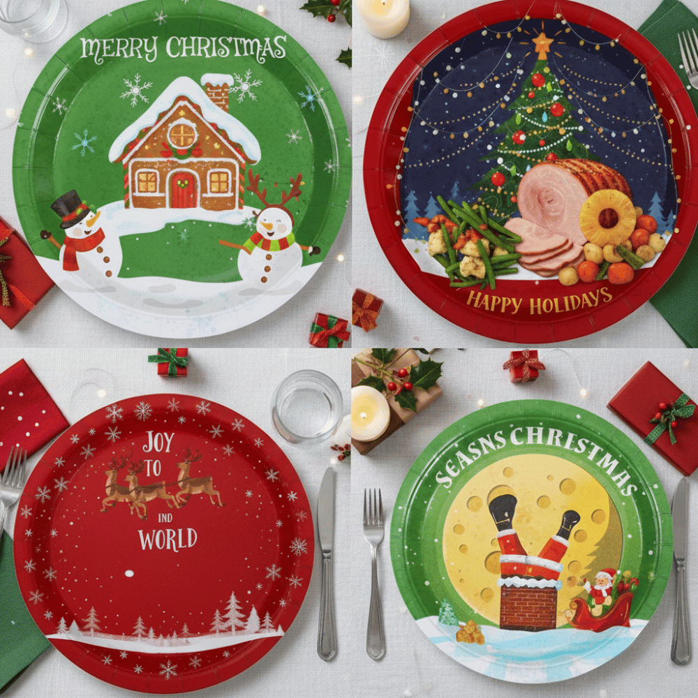 These plates are more than just practical – they enhance the holiday atmosphere with their colorful, fun designs. Perfect for Christmas party tableware, they are ideal for serving all kinds of food, whether it’s a formal Christmas dinner or a casual holiday buffet. When the party’s over, simply toss the plates in the trash – no need to spend hours washing dishes.